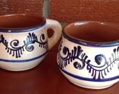 Vintage Mexico Ceramic Clay Blue & White Coffee Cup Mugs.