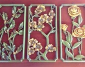 Vintage Dart Industries 3571B Box Style Wall Plaques Floral Design 1975 16" X 8"